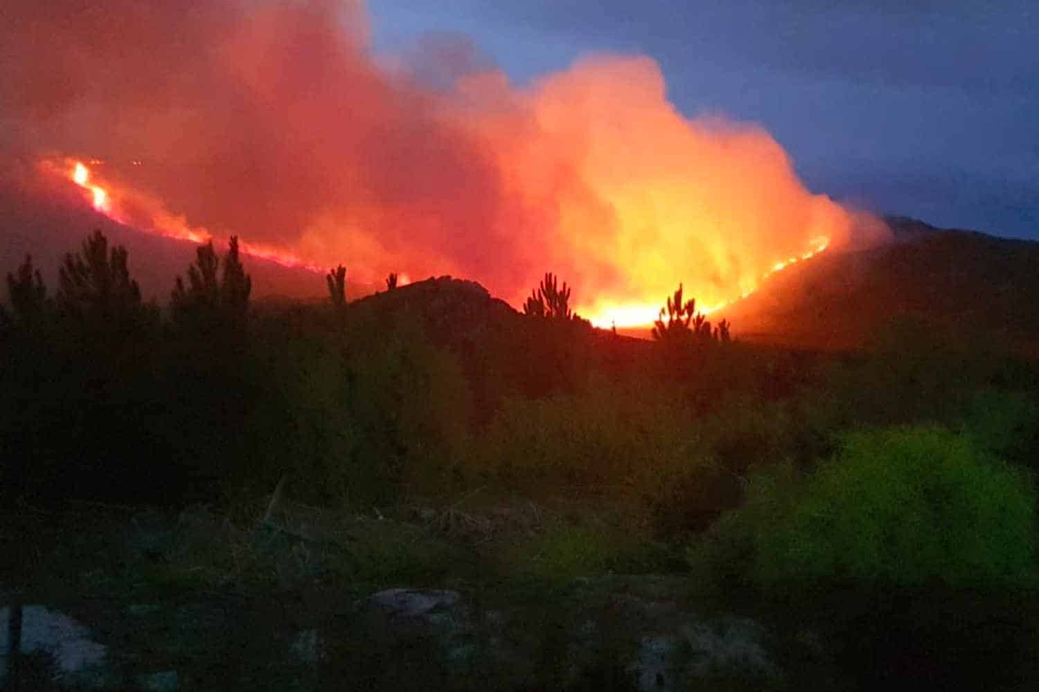 The fire, which is reported to have started in the department’s Pine Plantation in the Kleinmond area, has destroyed more than 4 000ha of vegetation.