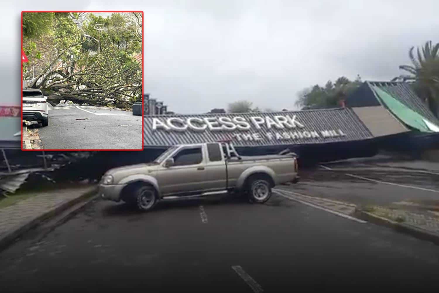 - Strong winds caused significant damage, including the collapse of the entrance structure at Access Park in Kenilworth.