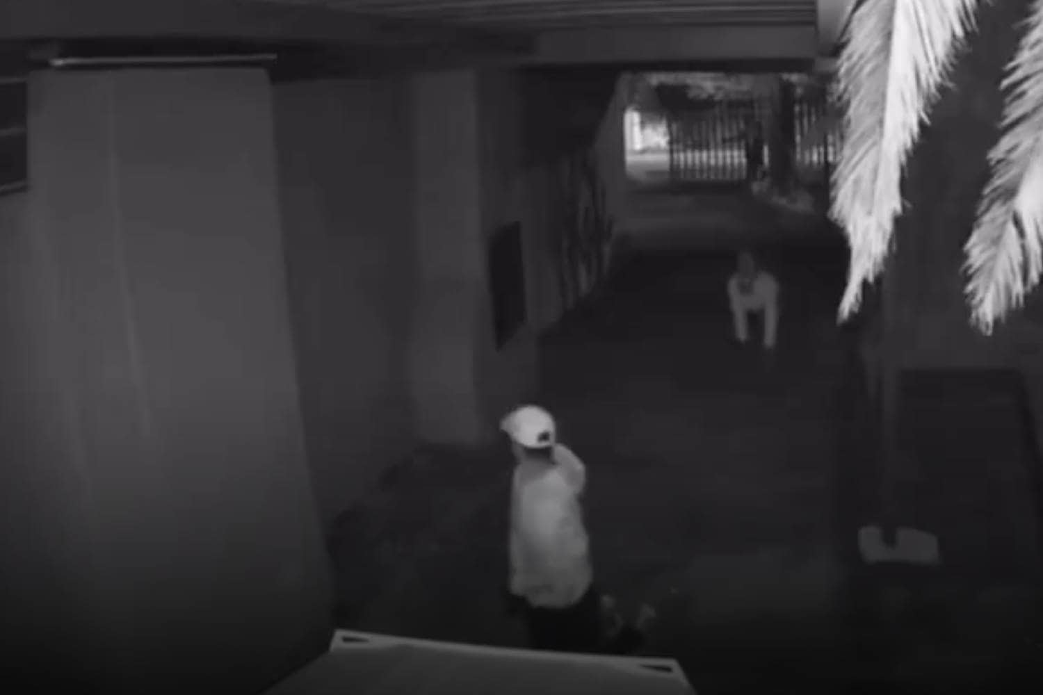 The surveillance footage, shot in night mode, offers clear images of the suspects, who remain at large.
