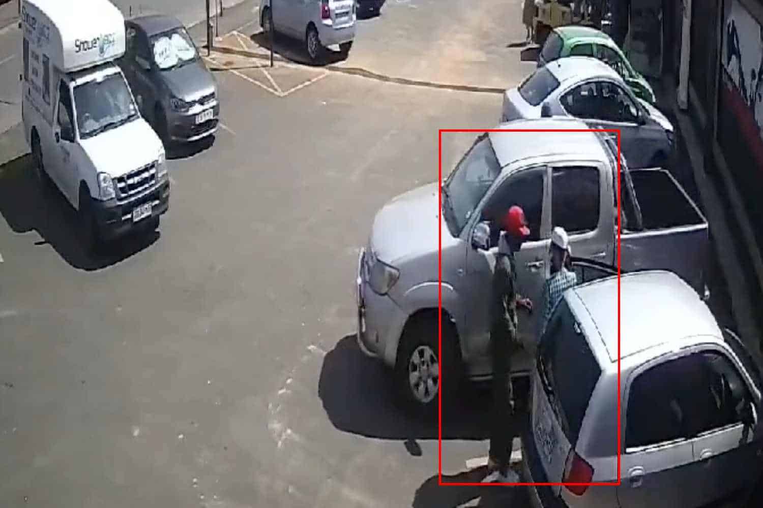 The silver bakkie pulled off with the man wedged in the backseat, between two gunmen. From what we could see from the CCTV footage, the perpetrators took a bag from the victim’s vehicle which was abandoned in the parking area.