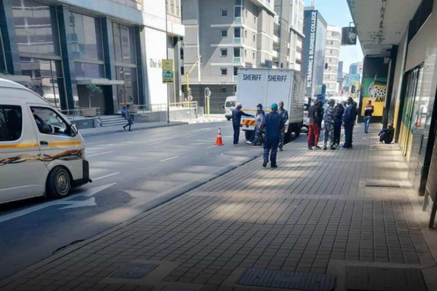 The situation escalated outside Luthuli House when a truck, flanked by a group of men in camo, arrived to enforce the court order.